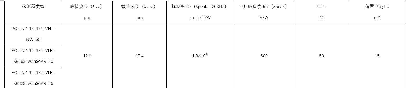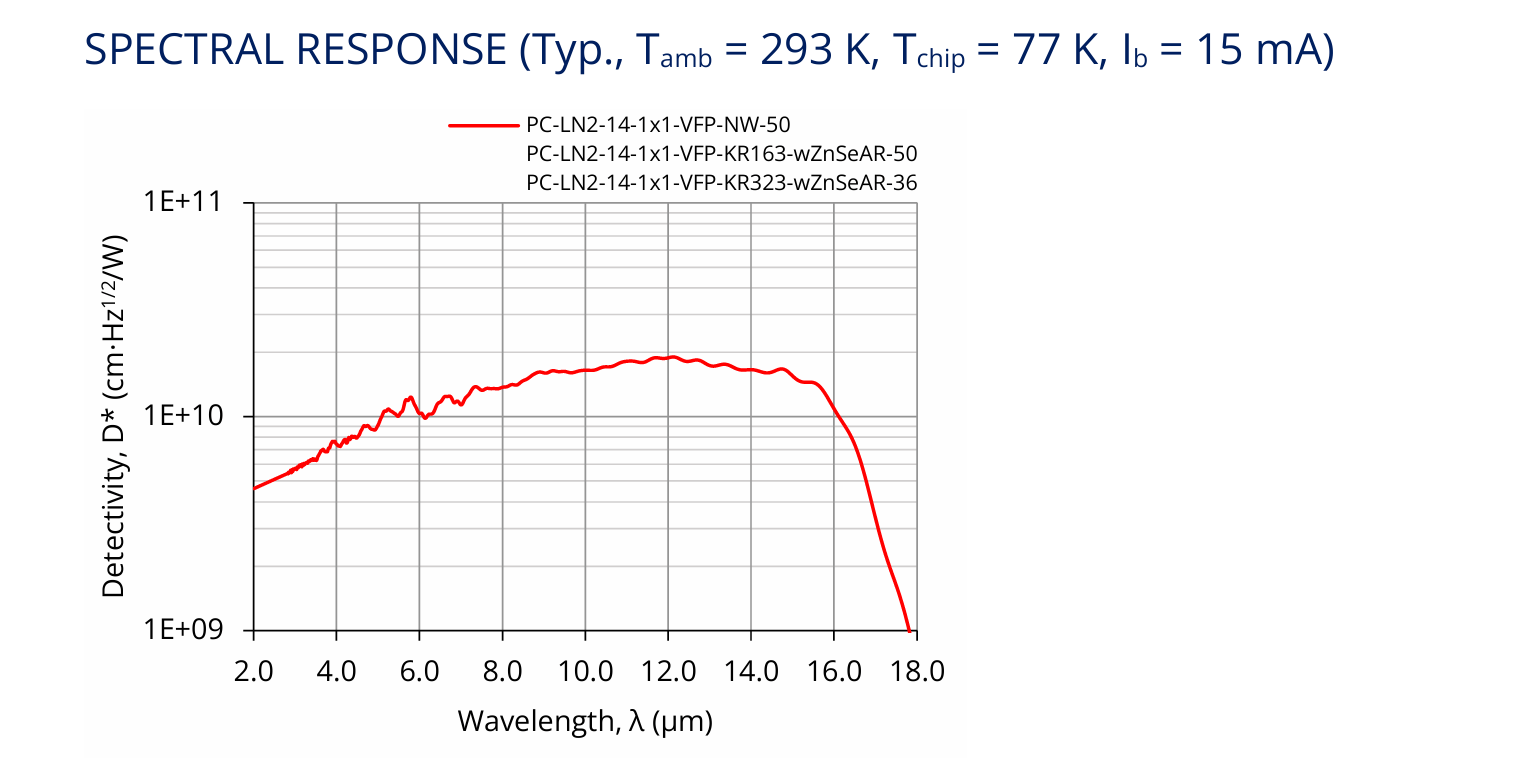 HgCdTe 光導(dǎo)紅外探測器針對 77 K 下的工作進行了優(yōu)化。探測范圍:2-17μm