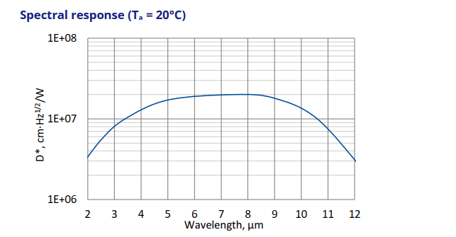 | 峰值波長 λpeak, μm | 8.5±1.5 |