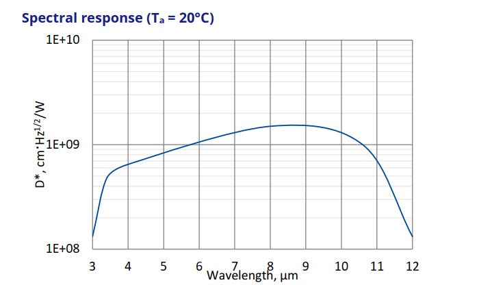 | 峰值波長 λpeak, μm | 8.5±0.5 |