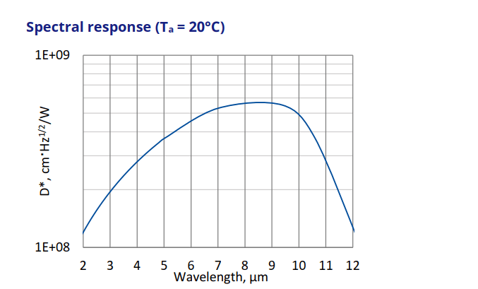 | 峰值波長 λpeak, μm | 8.5±1.5 |