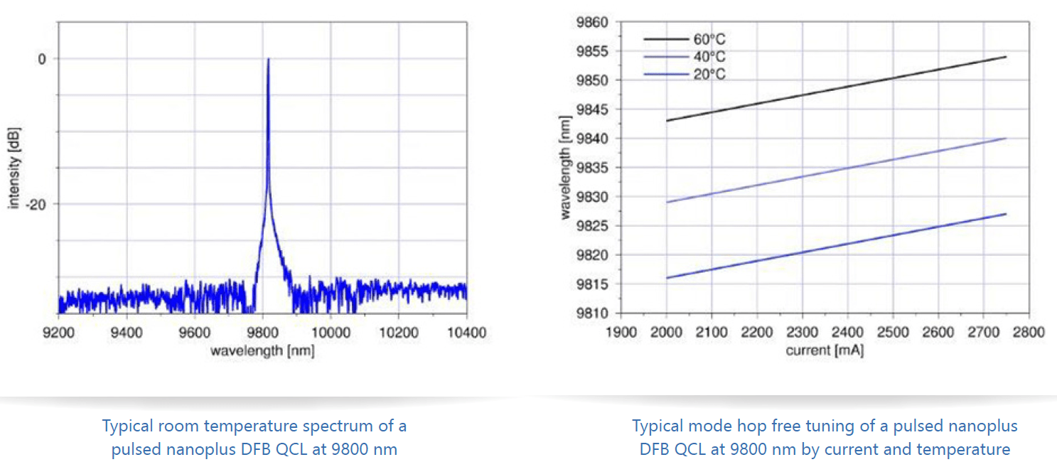 nanoplus提供6000-14000nm之間任意中心波長的單模量子級聯(lián)激光器(DFB-QCL)和多模量子級聯(lián)激光器(FP-QCL),